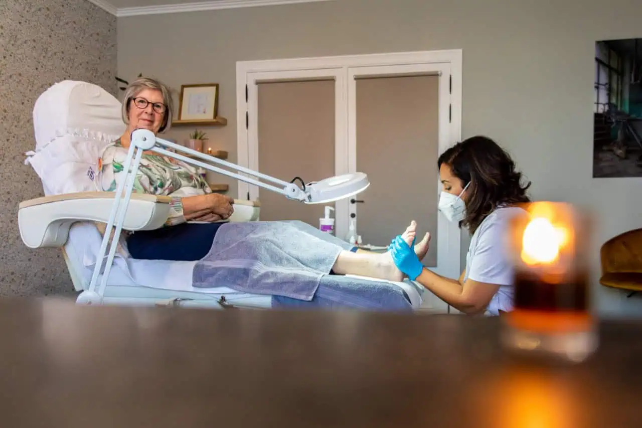 Behandelingen voor voetaandoeningen, zoals schimmelnagels, likdoorns of ingegroeide teennagels en esthetische behandelingen voor een mooie uitstraling van uw voeten.